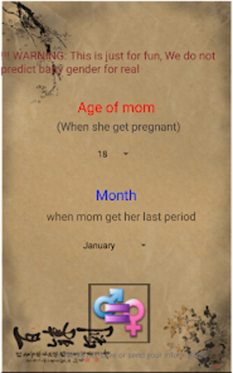 Det kinesiska graviditetskalendern är en fascinerande app för Android som erbjuder en traditionell metod för att förutsäga barnets kön baserat på en gammal kinesisk legend. Enligt legenden, som hävdar att kalendern begravdes i en kunglig grav för nästan 900 år sedan, kan användare ange moderns ålder och månaden för befruktningen för att få en indikation på om barnet kan bli en pojke eller flicka. Denna app är helt gratis och tillhör livsstils-kategorin, vilket gör den lättillgänglig för alla som är nyfikna på denna tradition.